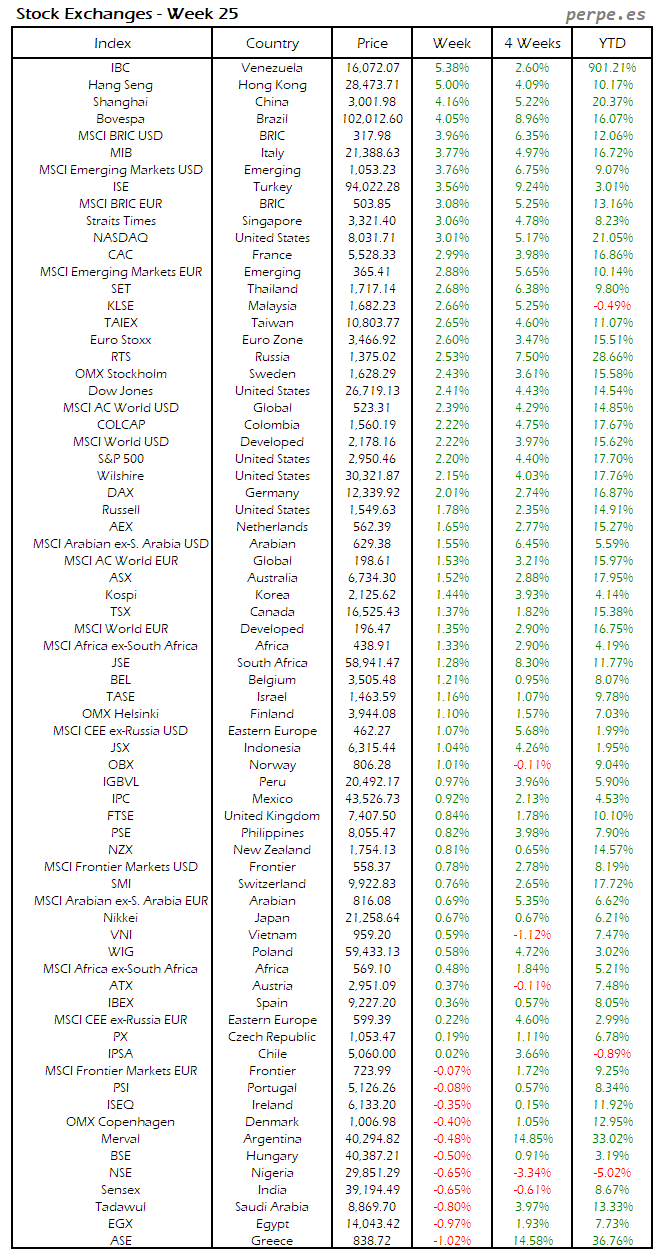 Bolsas Mundiales: Semana 25
