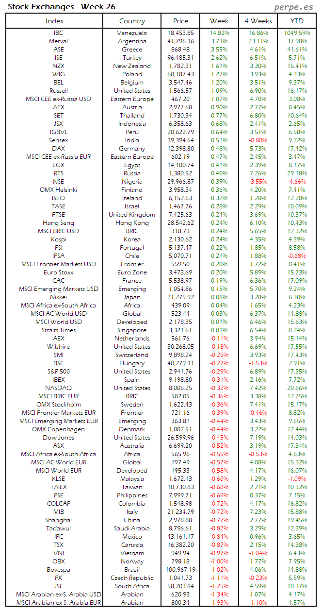 Bolsas Mundiales: Semana 26