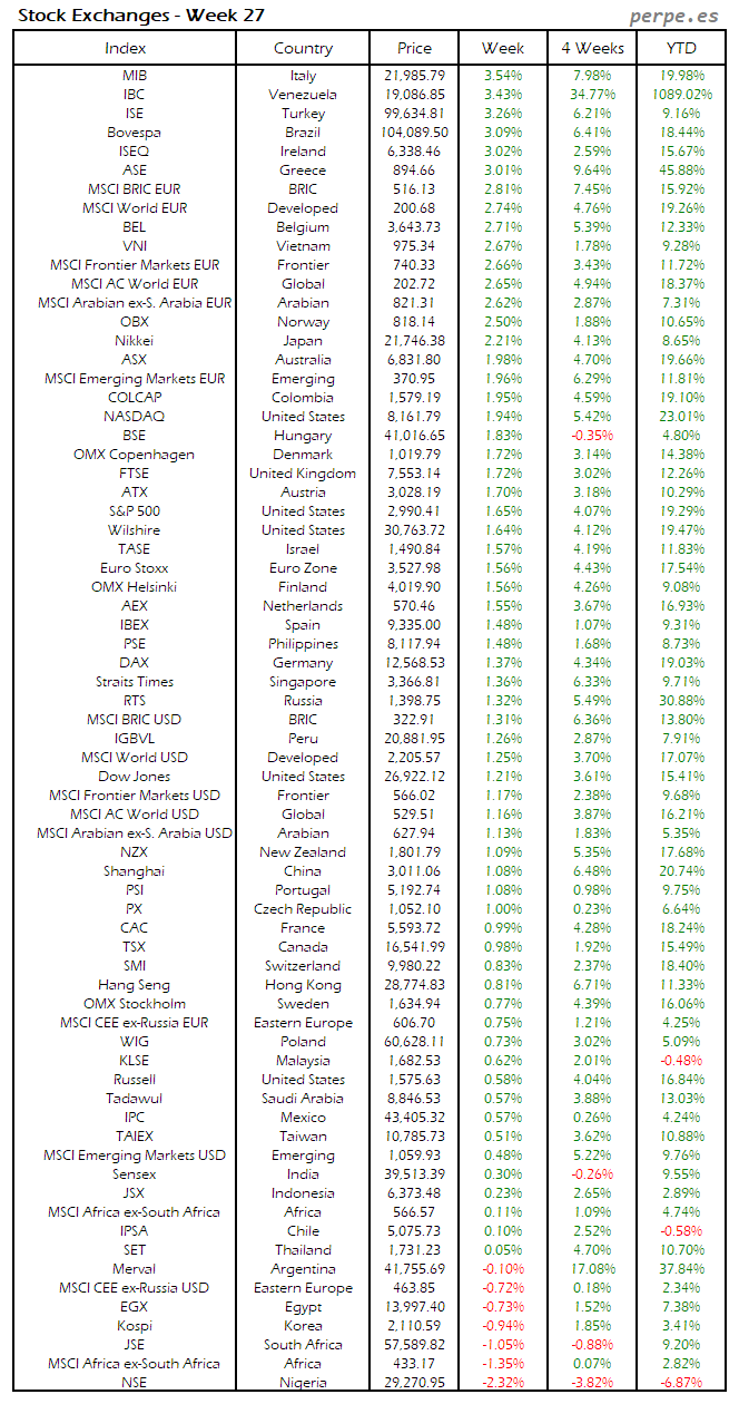 Bolsas Mundiales: Semana 27