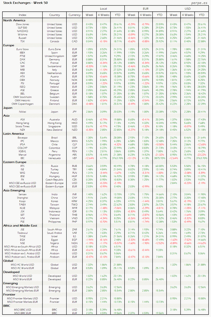 Bolsas Mundiales – Moneda Local, EUR, USD: Semana 50