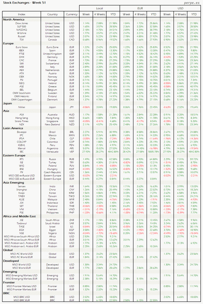 Bolsas Mundiales – Moneda Local, EUR, USD: Semana 51