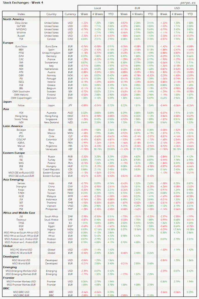 Bolsas Mundiales – Moneda Local, EUR, USD: Semana 4