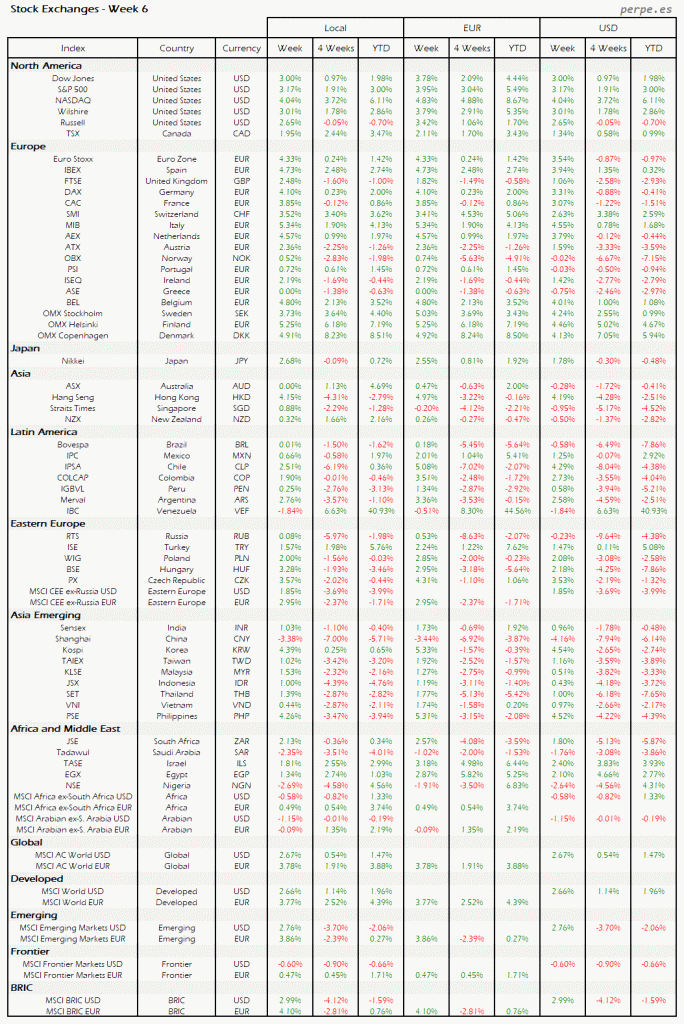 Bolsas Mundiales – Moneda Local, EUR, USD: Semana 6