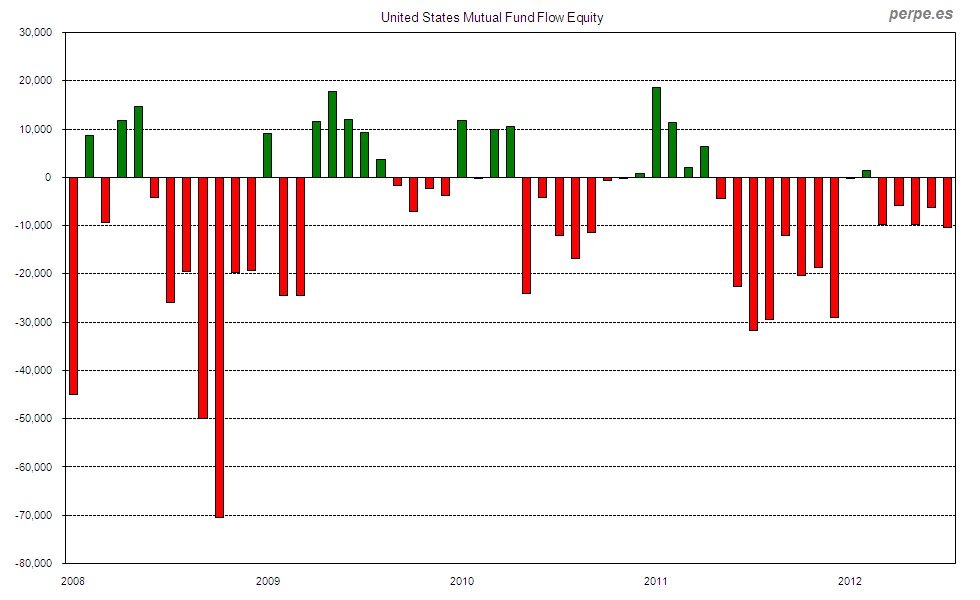 Flujo de fondos de inversión de acciones en Estados Unidos desde 2008 / Equity mutual funds flows in United States since 2008 Posted 24 September, 2012 by perpe