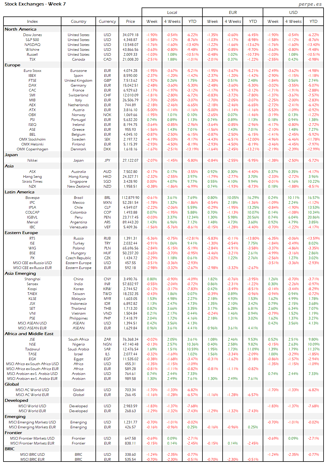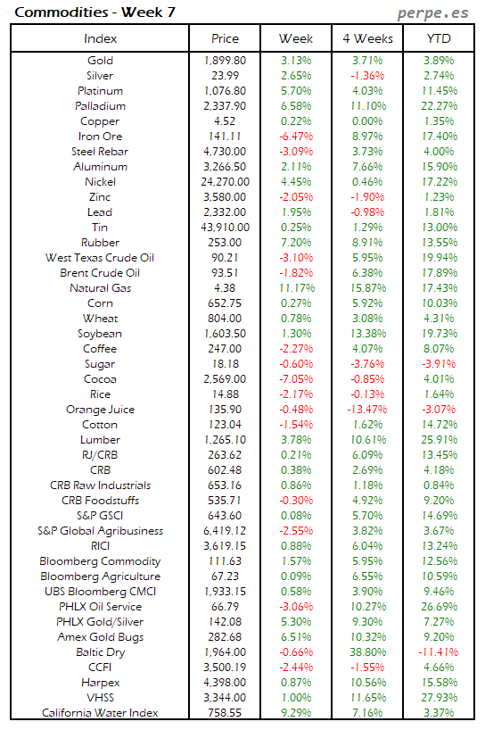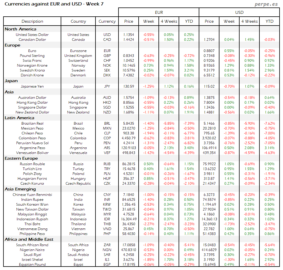 Resumen semanal bolsas, divisas y materias primas: Semana 7