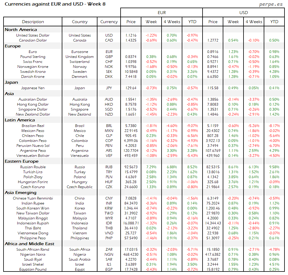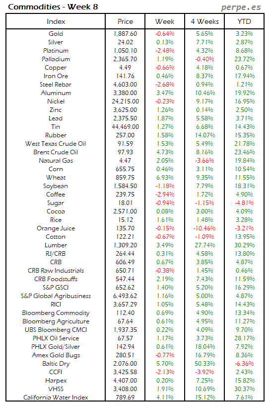 Resumen semanal bolsas, divisas y materias primas: Semana 8