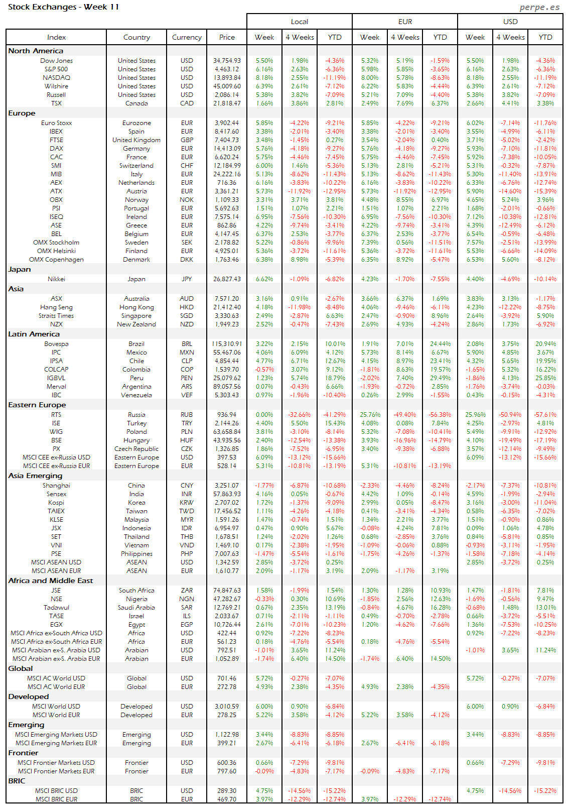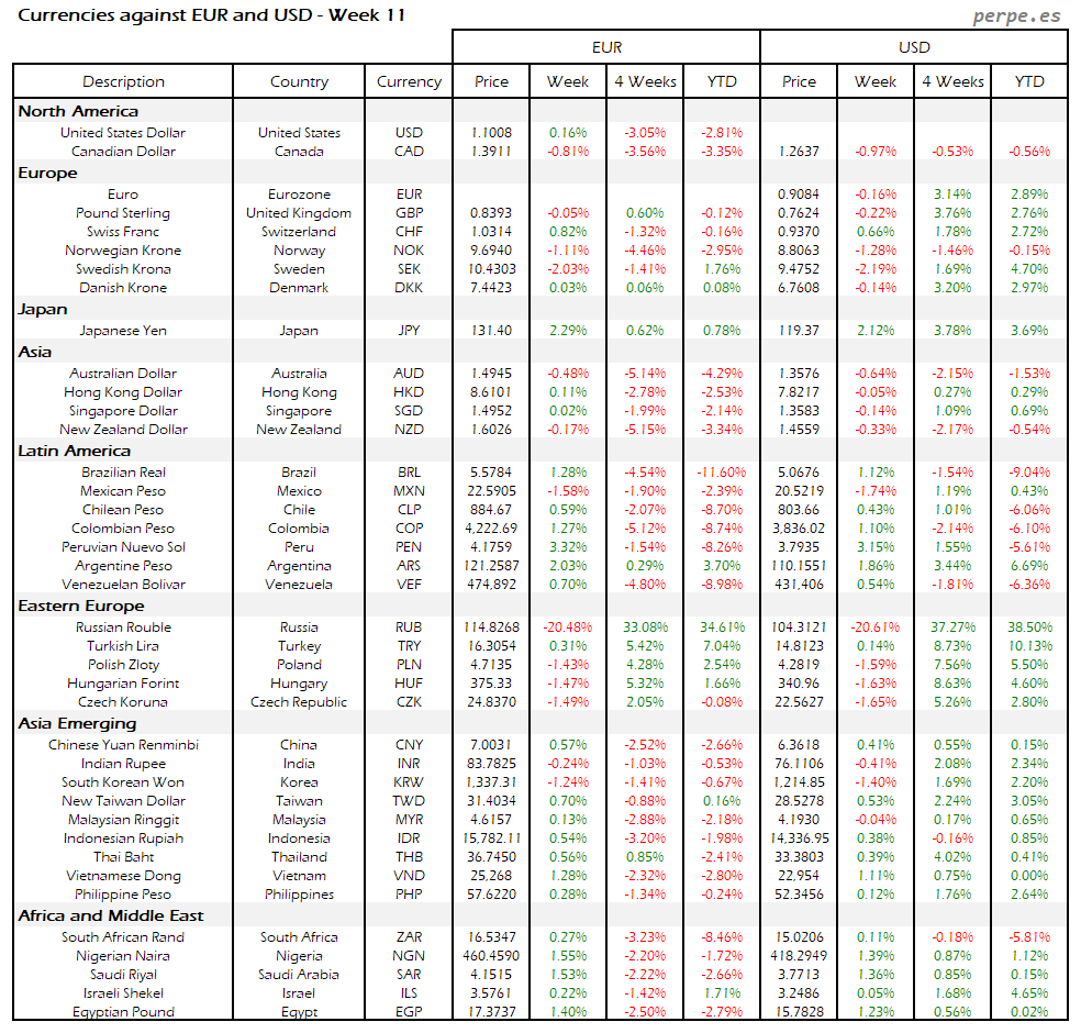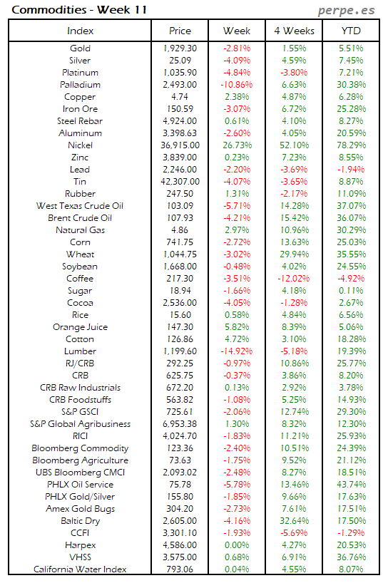 Resumen semanal bolsas, divisas y materias primas: Semana 11