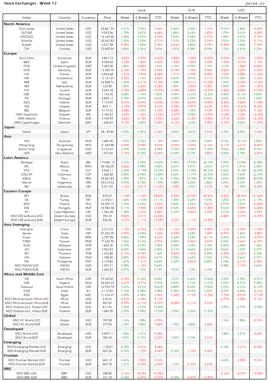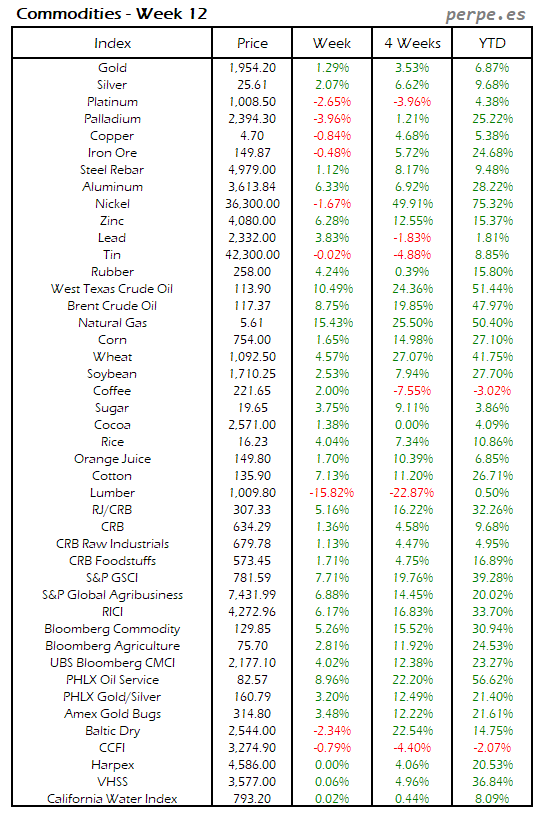 Resumen semanal bolsas, divisas y materias primas: Semana 12