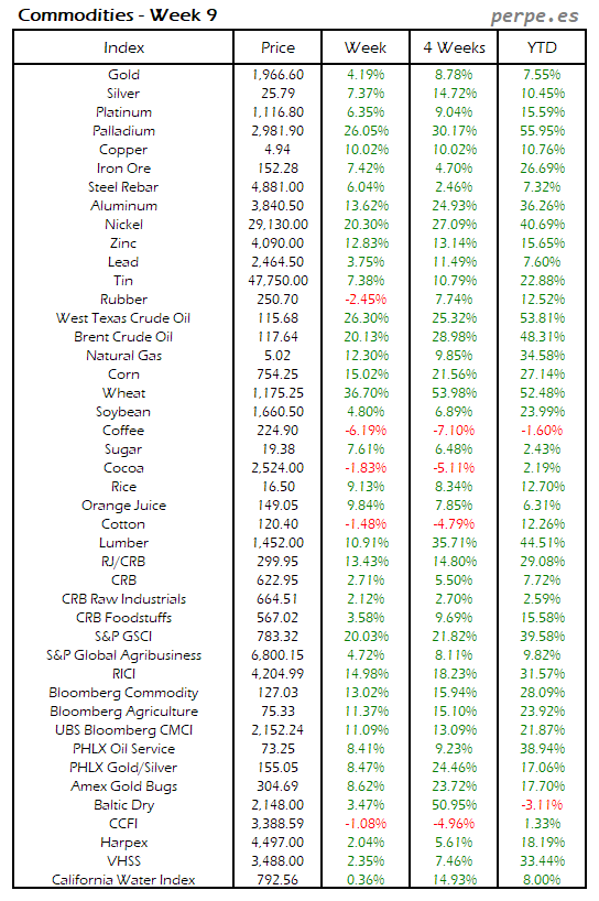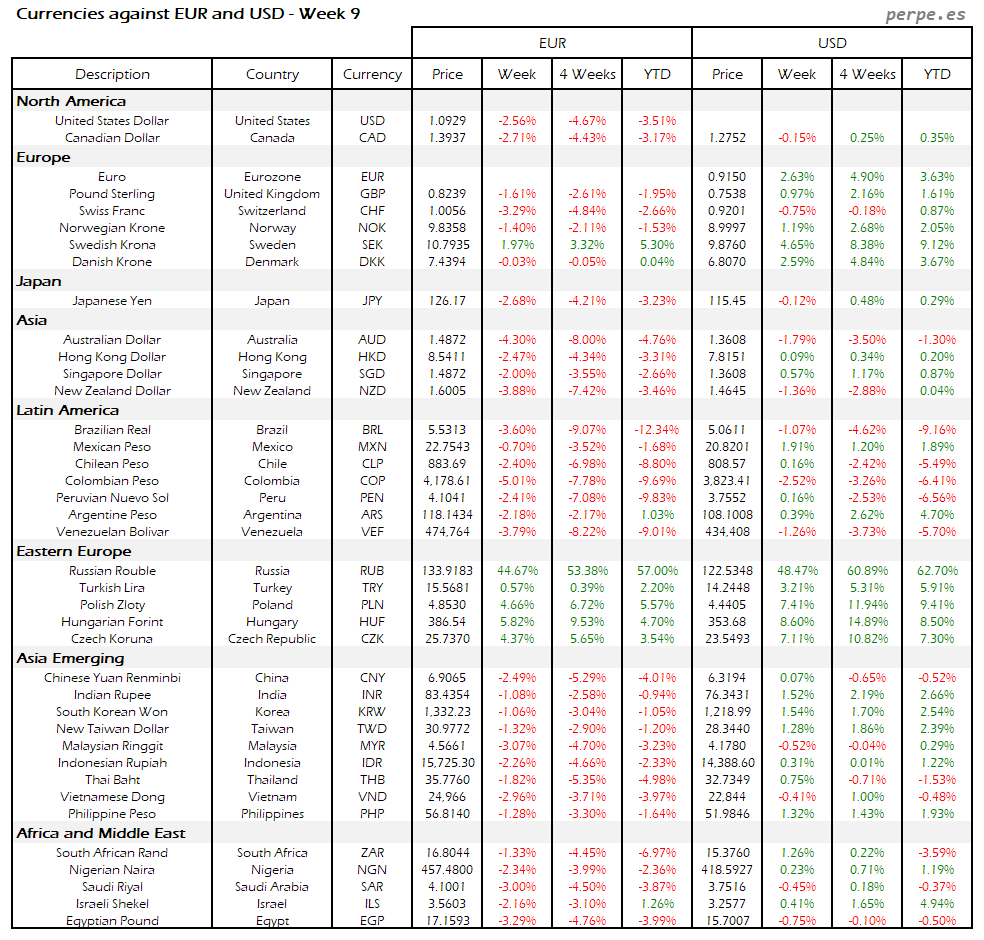 Resumen semanal bolsas, divisas y materias primas: Semana 9