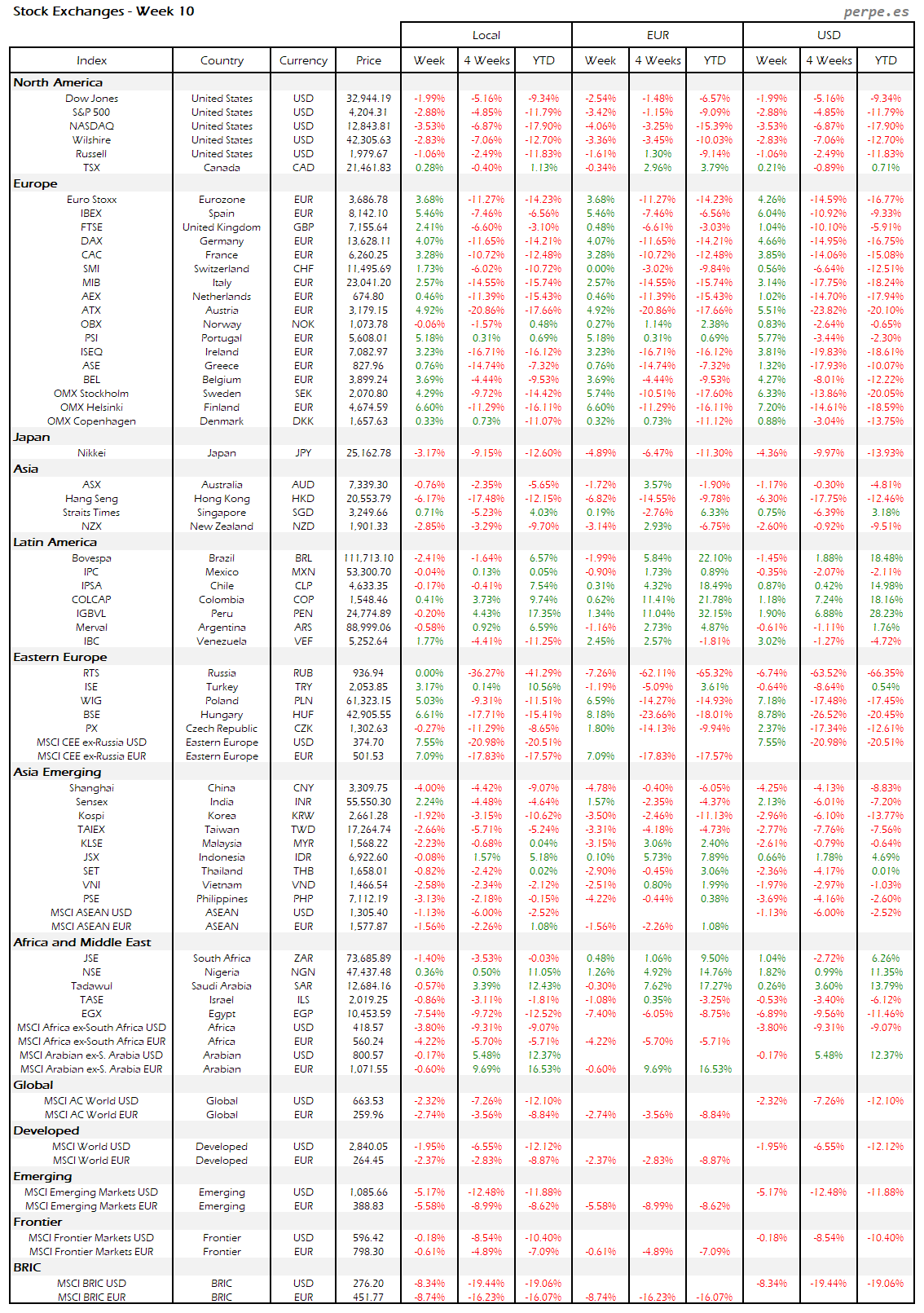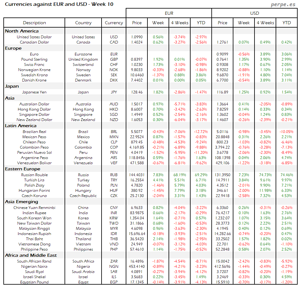 Resumen semanal bolsas, divisas y materias primas: Semana 10