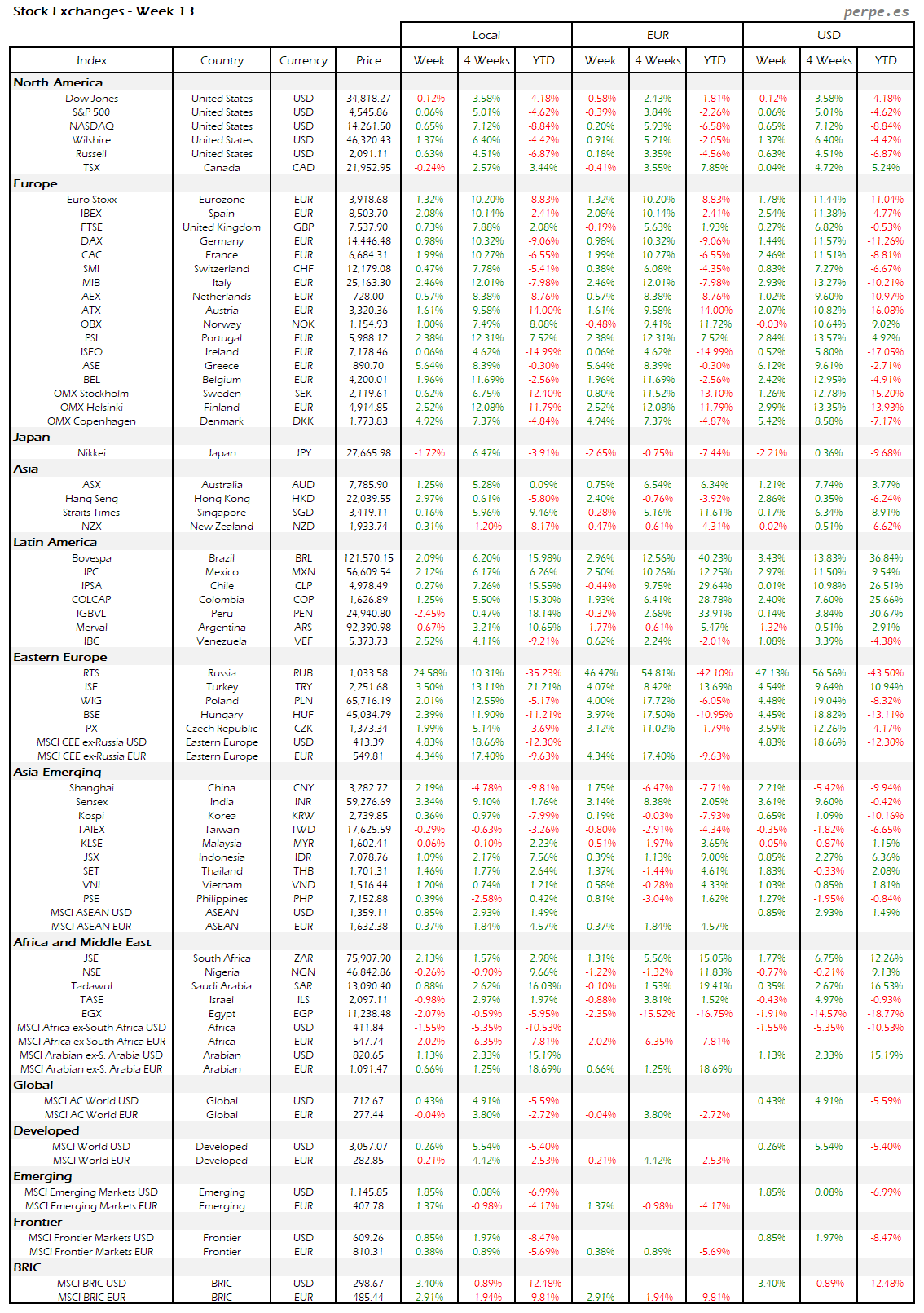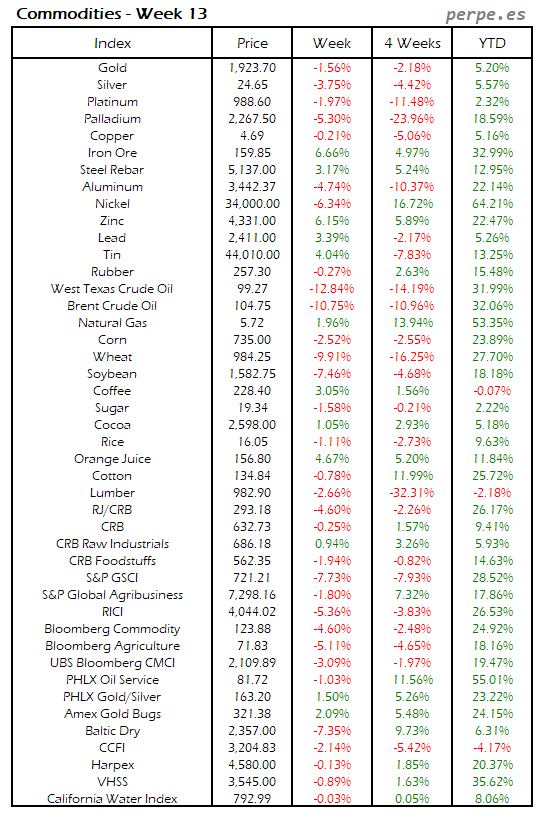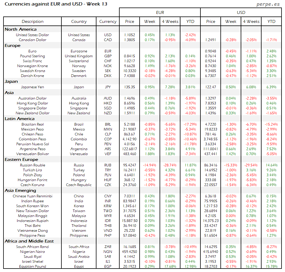 Resumen semanal bolsas, divisas y materias primas: Semana 13