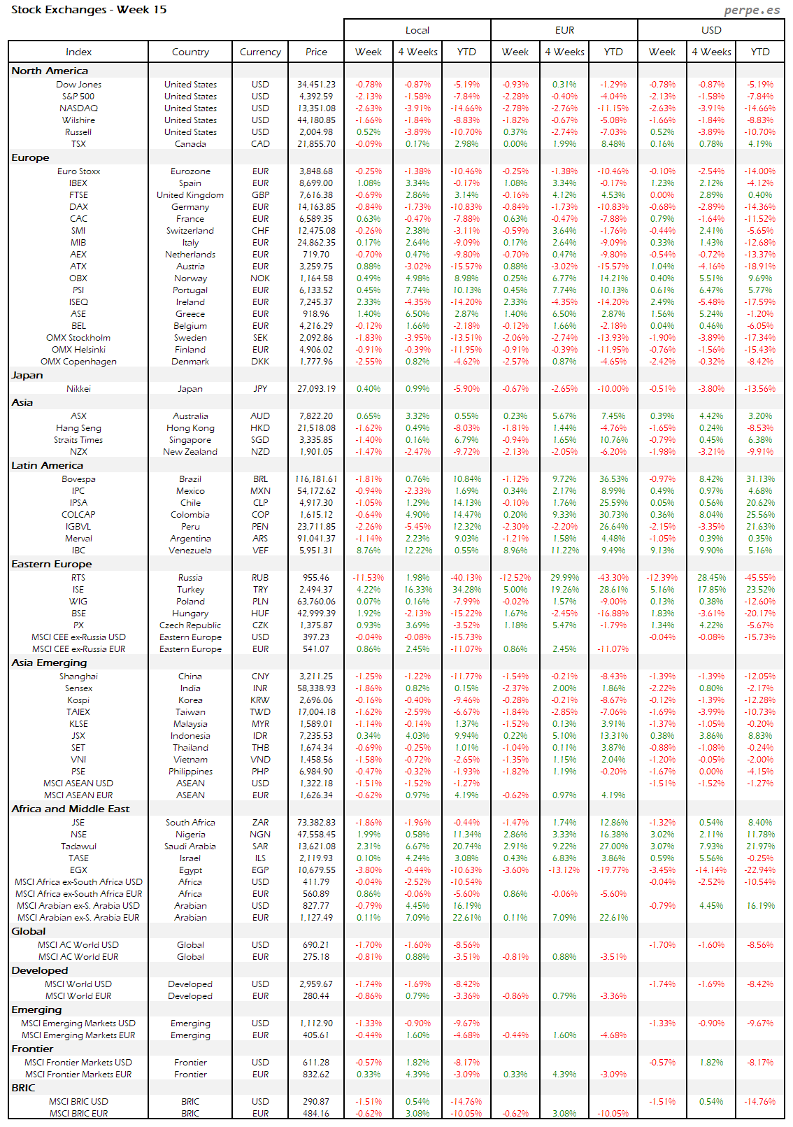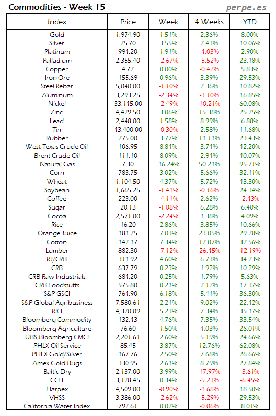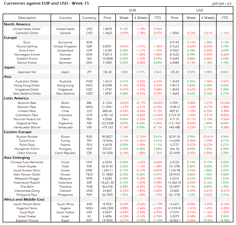 Resumen semanal bolsas, divisas y materias primas: Semana 15