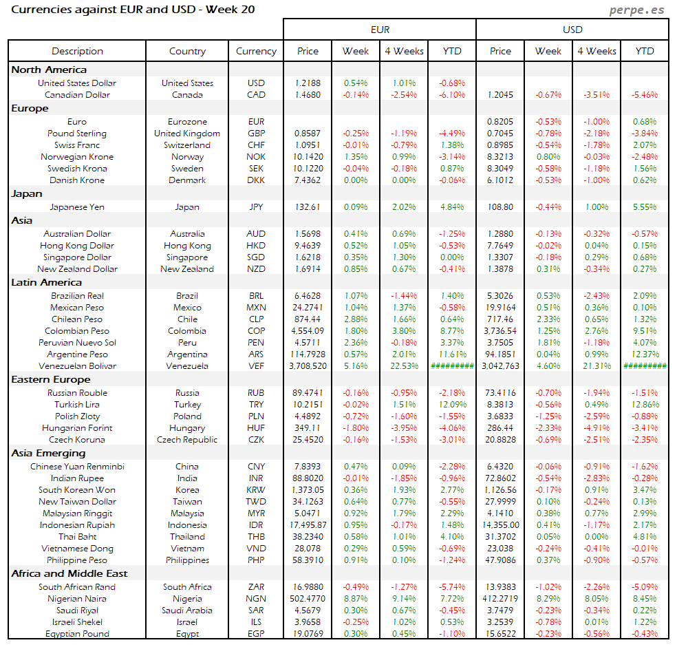 Resumen semanal bolsas, divisas y materias primas: Semana 20