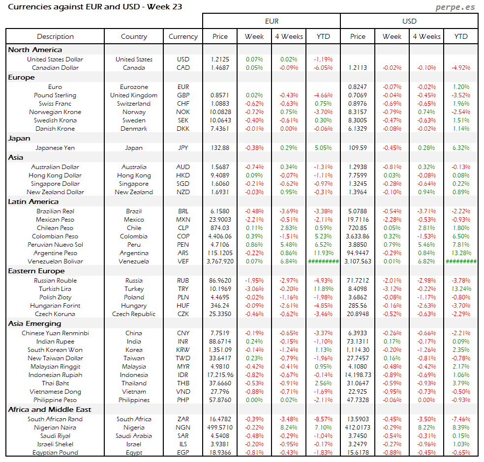 Resumen semanal bolsas, divisas y materias primas: Semana 23