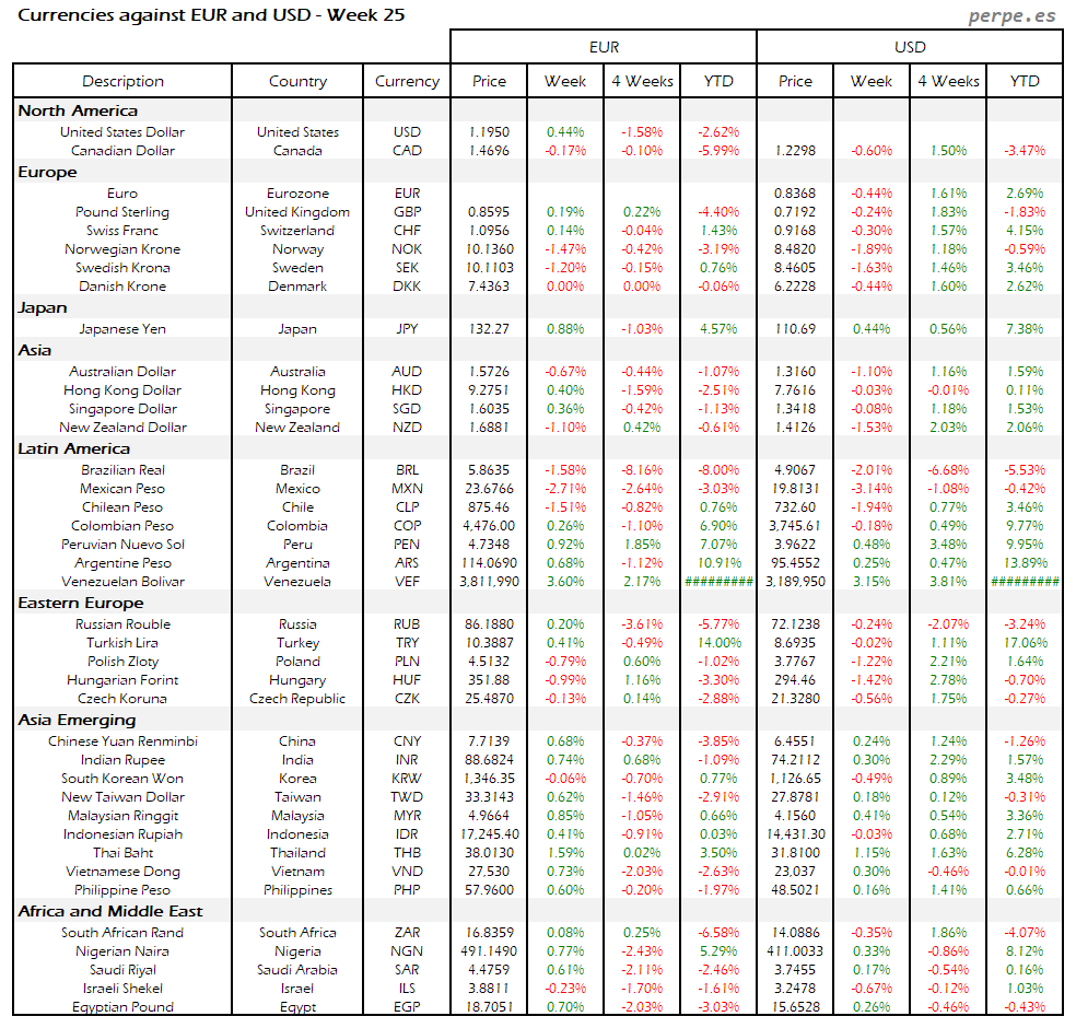 Resumen semanal bolsas, divisas y materias primas: Semana 25