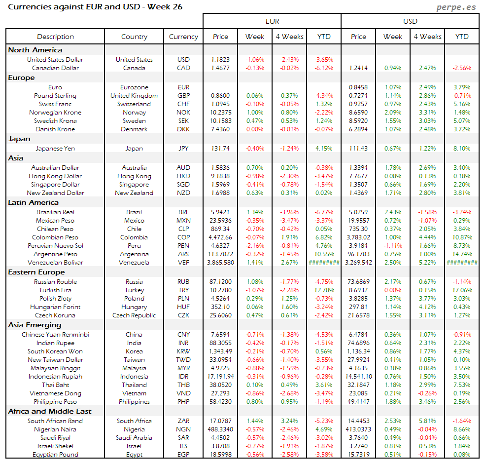 Resumen semanal bolsas, divisas y materias primas: Semana 26