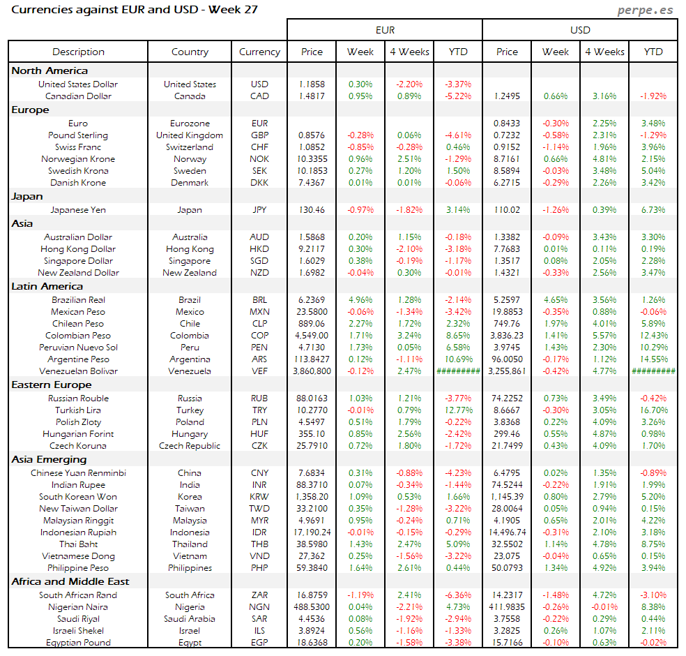 Resumen semanal bolsas, divisas y materias primas: Semana 27