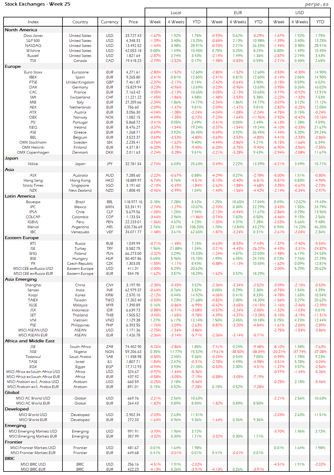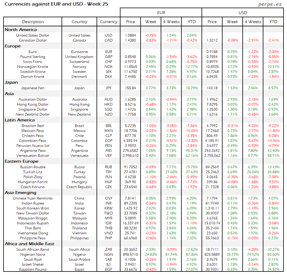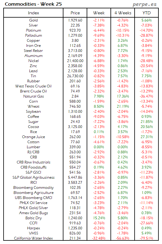 Resumen semanal bolsas, divisas y materias primas: Semana 25