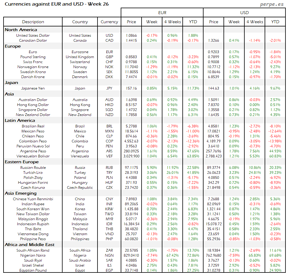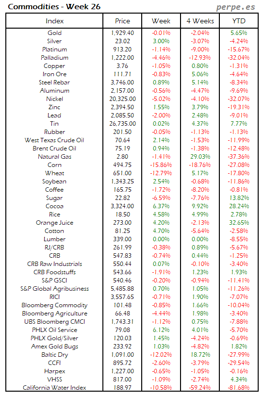 Resumen semanal bolsas, divisas y materias primas: Semana 26