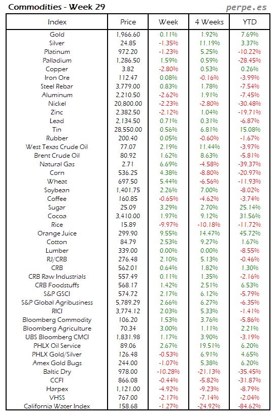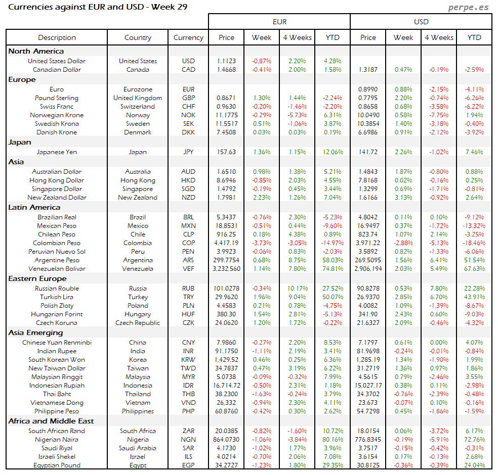 Resumen semanal bolsas, divisas y materias primas: Semana 29