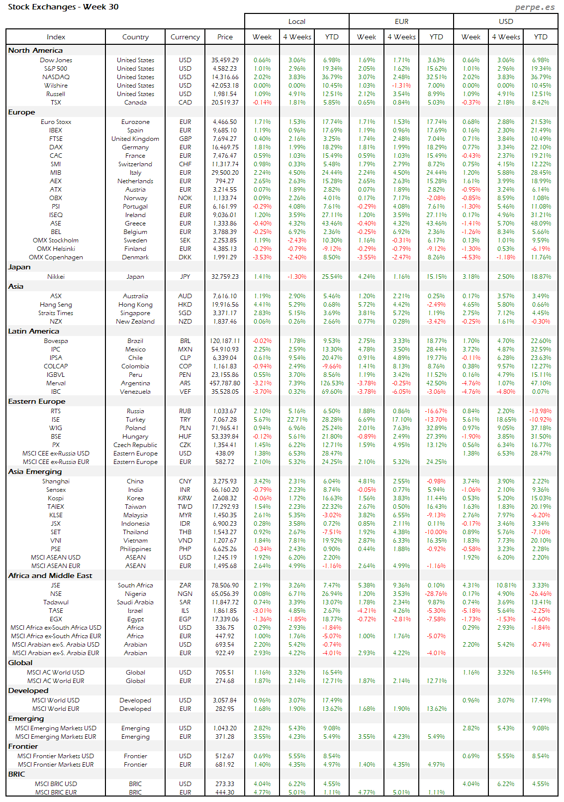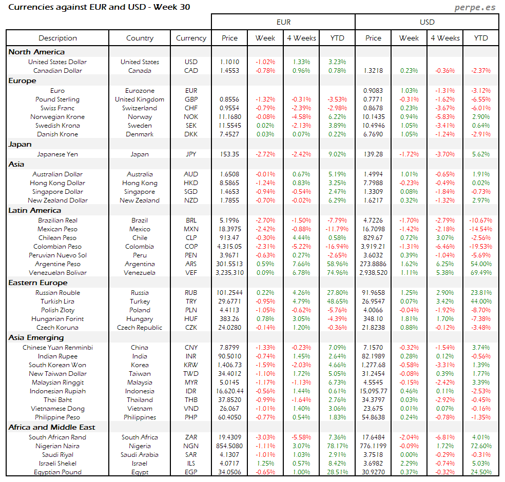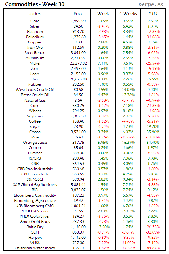 Resumen semanal bolsas, divisas y materias primas: Semana 30