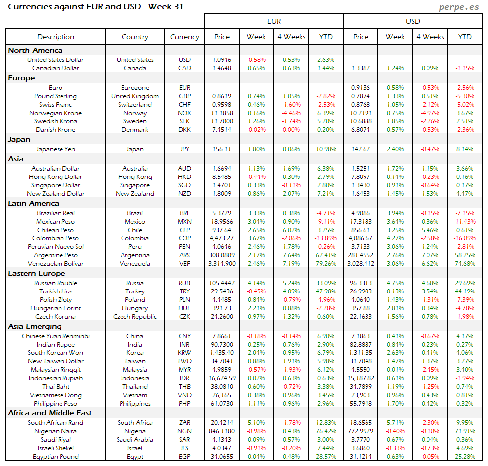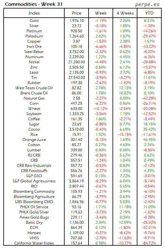 Resumen semanal bolsas, divisas y materias primas: Semana 31