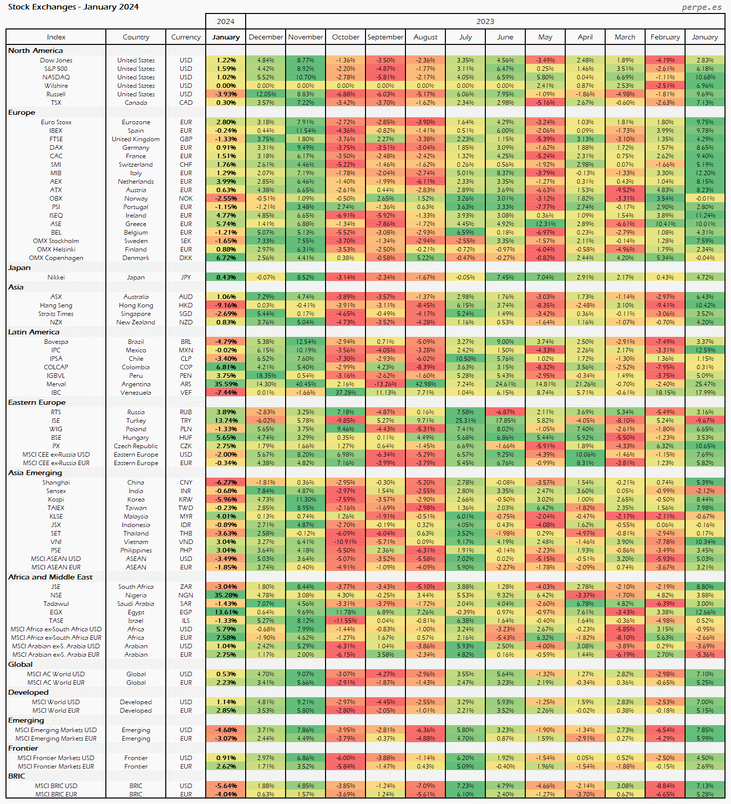 Bolsas Mundiales: Mensual