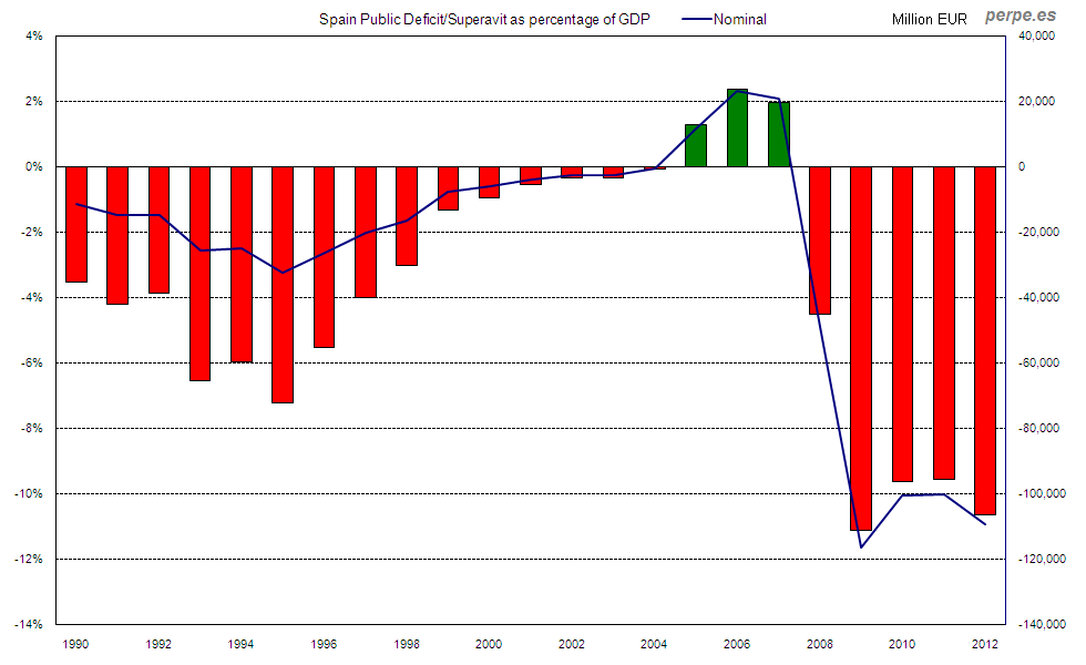 Déficit presupuestario en España desde 1990 / Budget deficit in Spain since 1990 Posted 22 October, 2013 by perpe