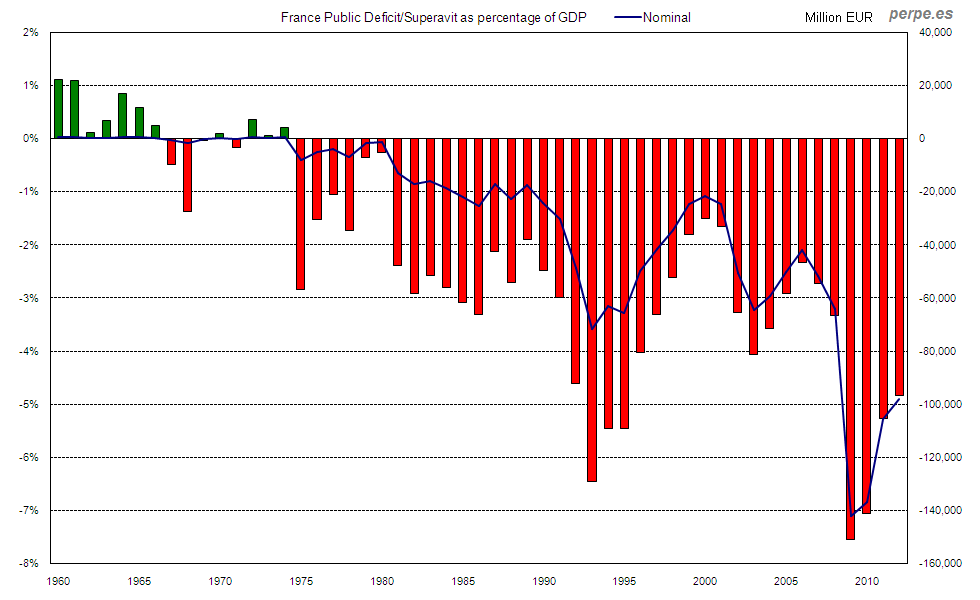 Déficit presupuestario en Francia desde 1960 / Budget deficit in France since 1960 Posted 14 November, 2013 by perpe