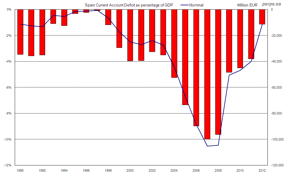 Déficit por cuenta corriente en España desde 1990 / Current account deficit in Spain since 1990 Posted 30 November, 2013 by perpe