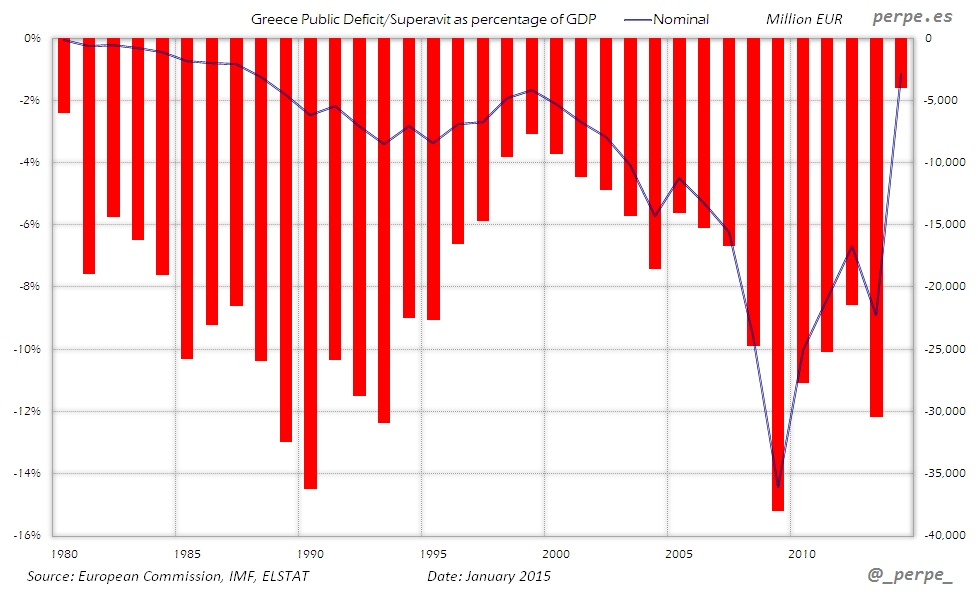 Déficit presupuestario en Grecia desde 1980 / Budget deficit in Greece since 1980 Posted 27 January, 2015 by perpe