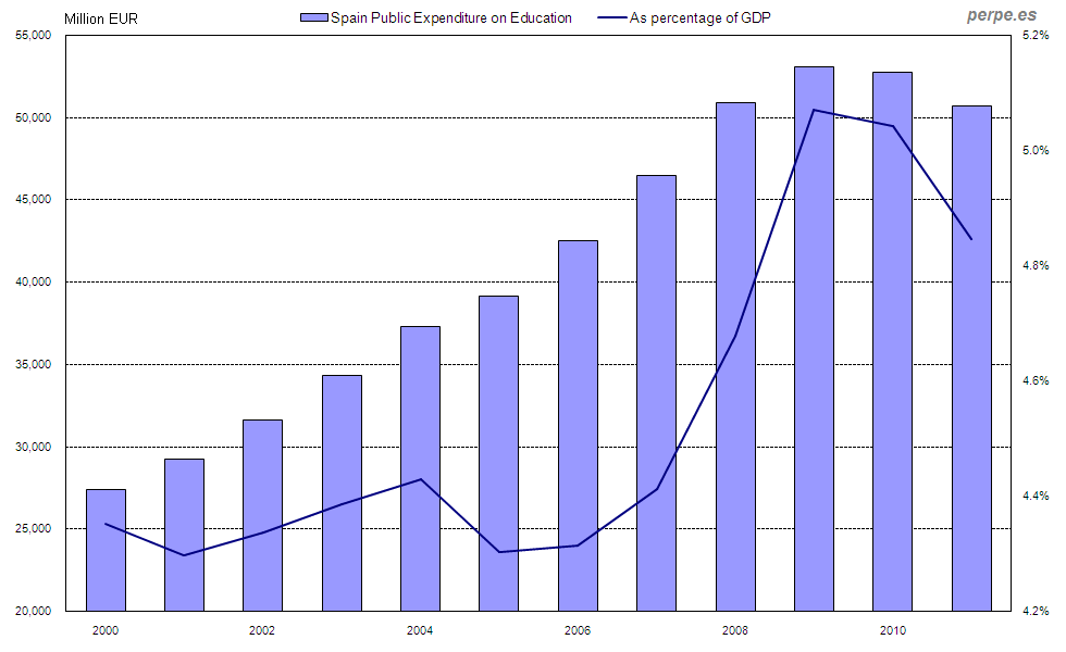 Gasto público en educación en España desde 2000 / Public expenditure on education in Spain since 2000 Posted 6 December, 2012 by perpe
