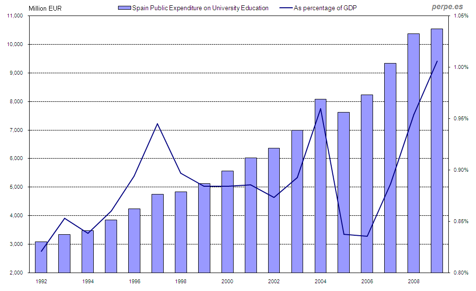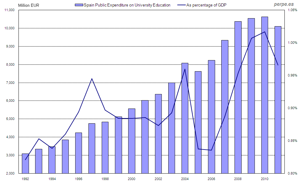 Gasto público en educación universitaria en España desde 1992 / Public expenditure on university education in Spain since 1992 Posted 6 December, 2012 by perpe